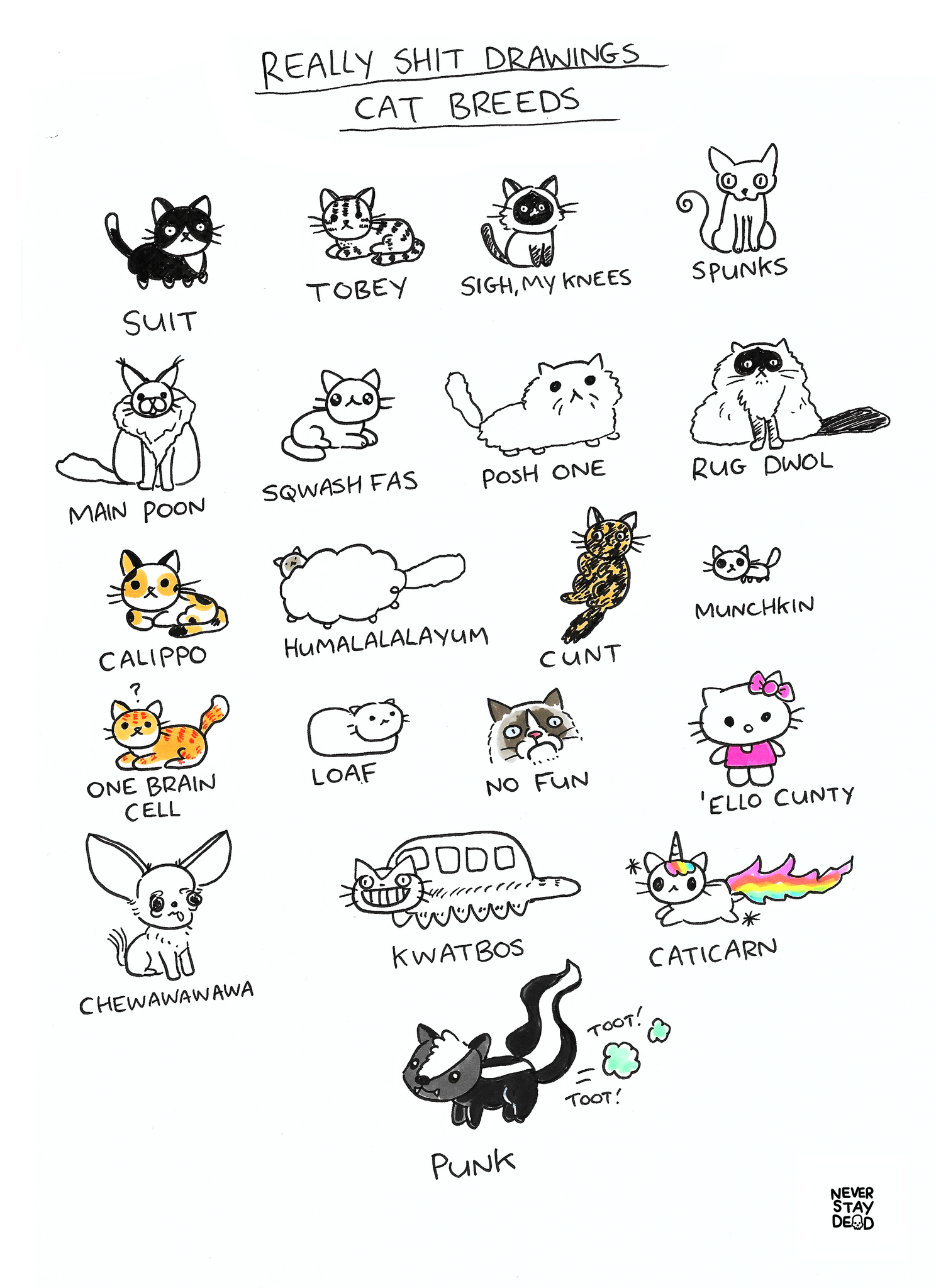 Original ‘Really Bad Drawings Of Cats’ Doodle Sheet (A4)