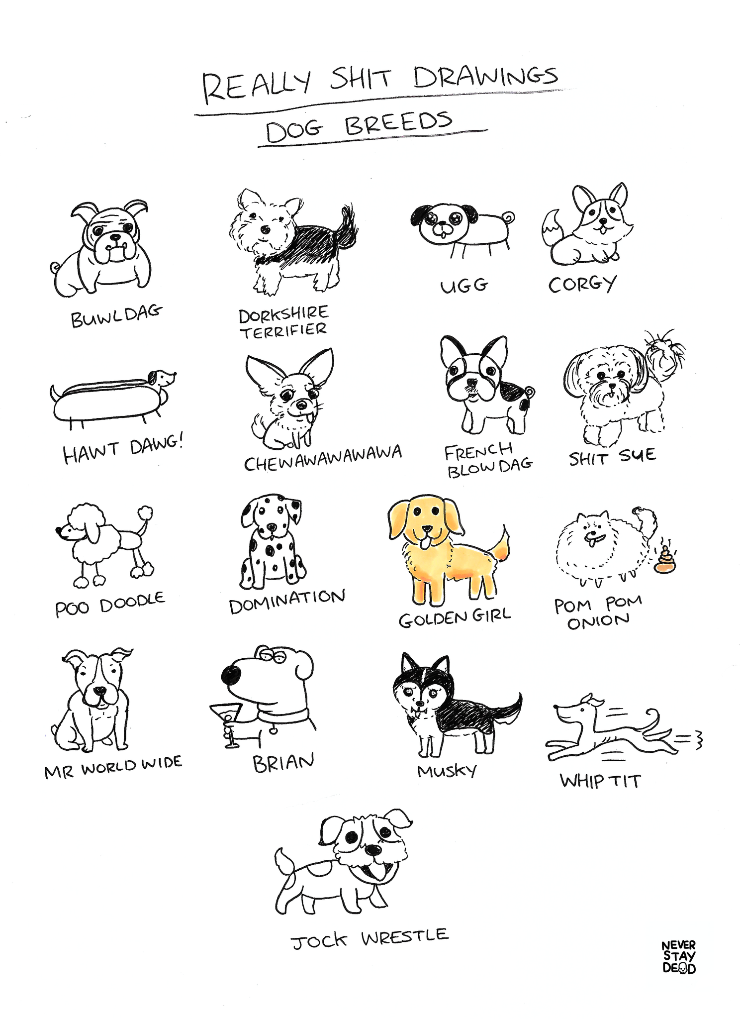 Original ‘Really Bad Drawings Of Dogs’ Doodle Sheer (A4)